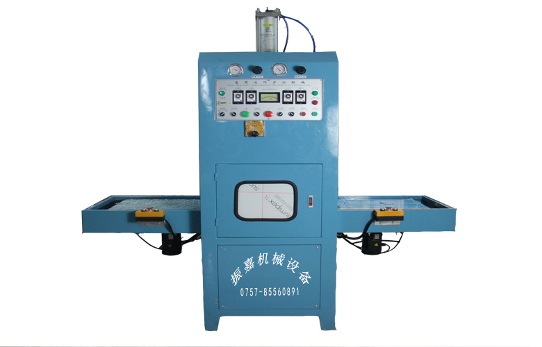 主要用于需要高周波熔接同时又必须同步裁断的产品加工,高周波机的工作原理是利用高周波先熔接再通过机器配有的压力装置同时切断。因为是同时完成,所以称为高周波同步熔断机。也称为高周波熔断机、熔断机、高周波同步裁断机、高周波裁断机。主要适用于APET、PETG、GAG环保材质的双面吸塑泡壳的封口包装、吸塑纸卡包装、牙刷包装、手机皮套/平板电脑皮套一次成型、皮垫压边裁断成型,以及EVA布类皮革、真皮、OPP、PU、表带、吊带、热水袋、保暖袋等需要熔接又要同步熔断的产品。