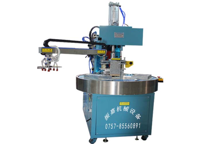 全自动吸塑纸板包装机型号为ZJ-8K-ADRB4,此机装有5557防火花保护装置,对高周波模具及生产产品起到很大的保护作用,是一款两工位圆盘转的高周波机,可以单人操作,节约人工;由振嘉机械设备有限公司高周波生产厂家专业制造,机器质量已通过欧盟CE质量出口检测;全自动吸塑纸板包装机以自动转盘方式操作,上下模对位准确,高频,操控简单易懂,便于维护及保养,本机配有触摸屏控制整机动作、内置PLC工控集成系统,可便于以后更改机械控制程序或扩展其它机械应用功能、此系统符合机械操作应用、也是现代化机械之趋势。