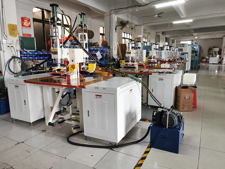油压双头脚踏式高周波机:操作工作台面板分别为机头的两边,操作方式主要是由操作人员右脚踏定位和左脚开关,焊接过程由时间自动控制,左右机头交替使用。机型主要有ZJ-5K-Y,ZJ-8K-Y,ZJ-10K-Y。