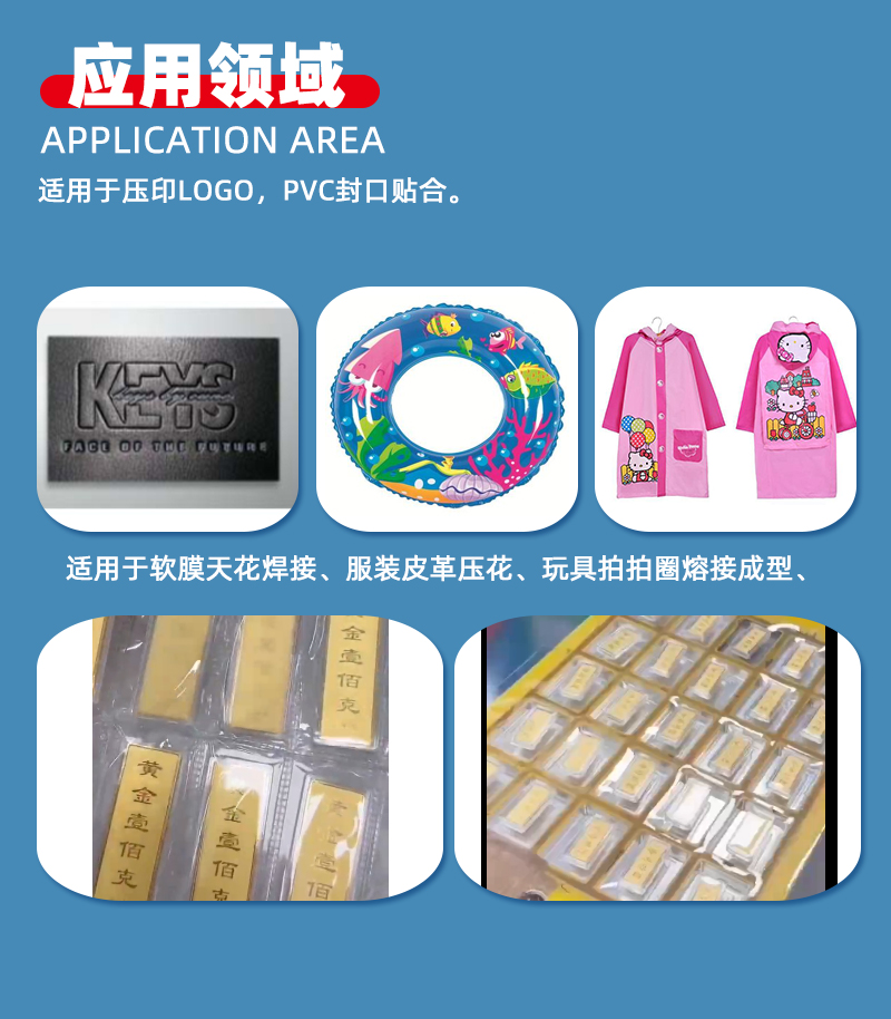 金条包装双头高周波机符合欧洲第4代环保标准,主要用于各种LOGO压印,PVC袋子封口,环保材料封口切边,以及测血压袋,血袋,尿袋,引流袋等等医疗袋子封口切边。