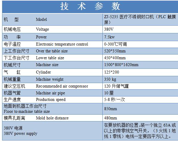 不锈钢医疗封口机压美容针管透析纸机器特点: