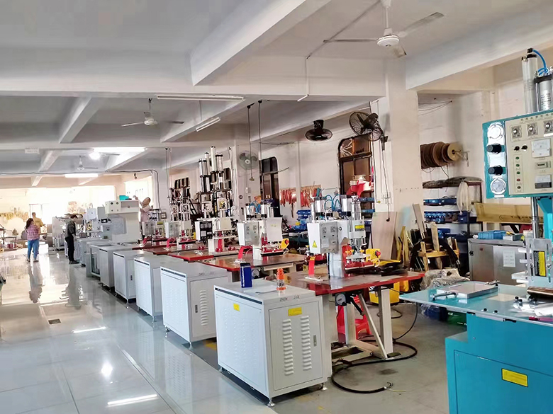 双头气动高周波机压羽绒标:操作工作台面板分别为机头的两边,操作方式主要是由操作人员右脚踏定位和左脚开关,焊接过程由时间自动控制,左右机头交替使用。
